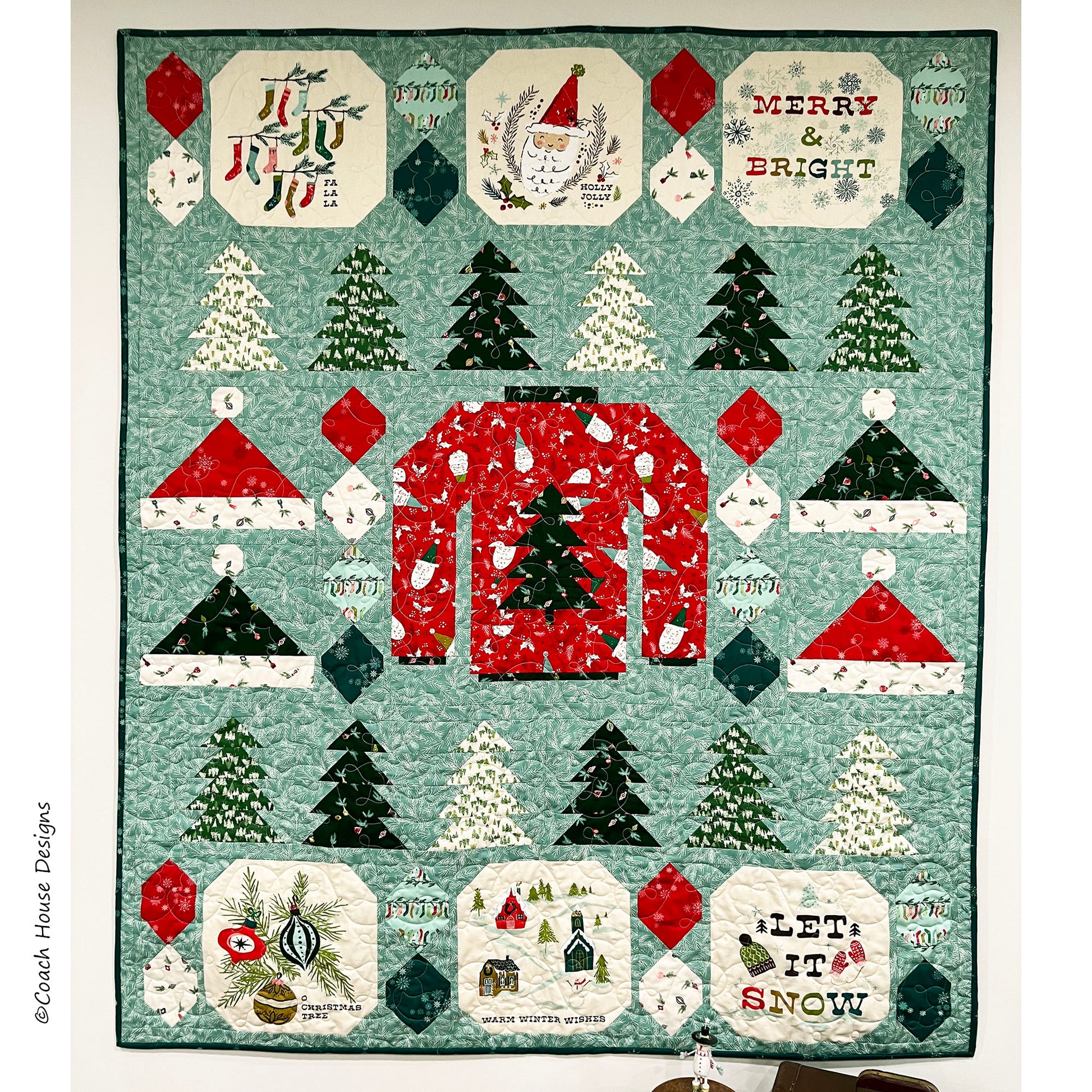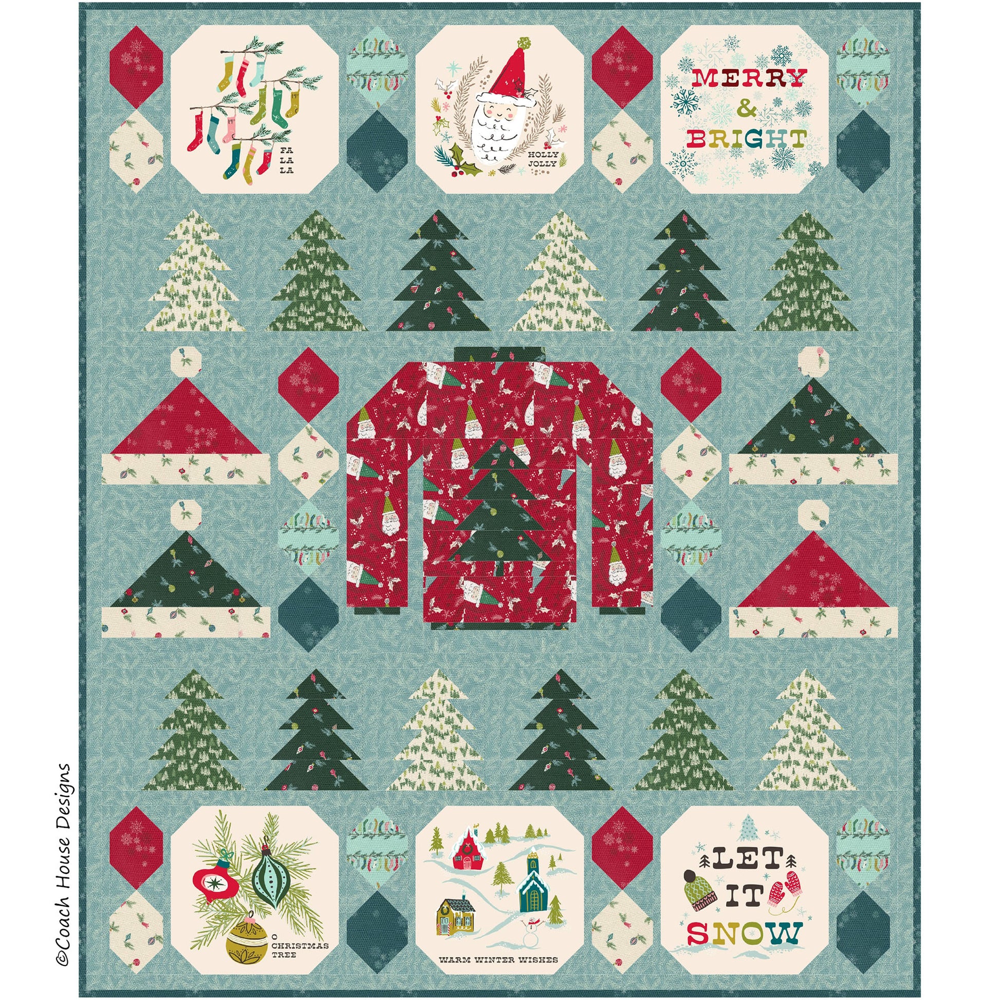 Finishing at 54" x 64", this holiday pattern features the fabric/panels from Fancy That Designs House's new Christmas line "Cozy Wonderland" for Moda Fabrics.