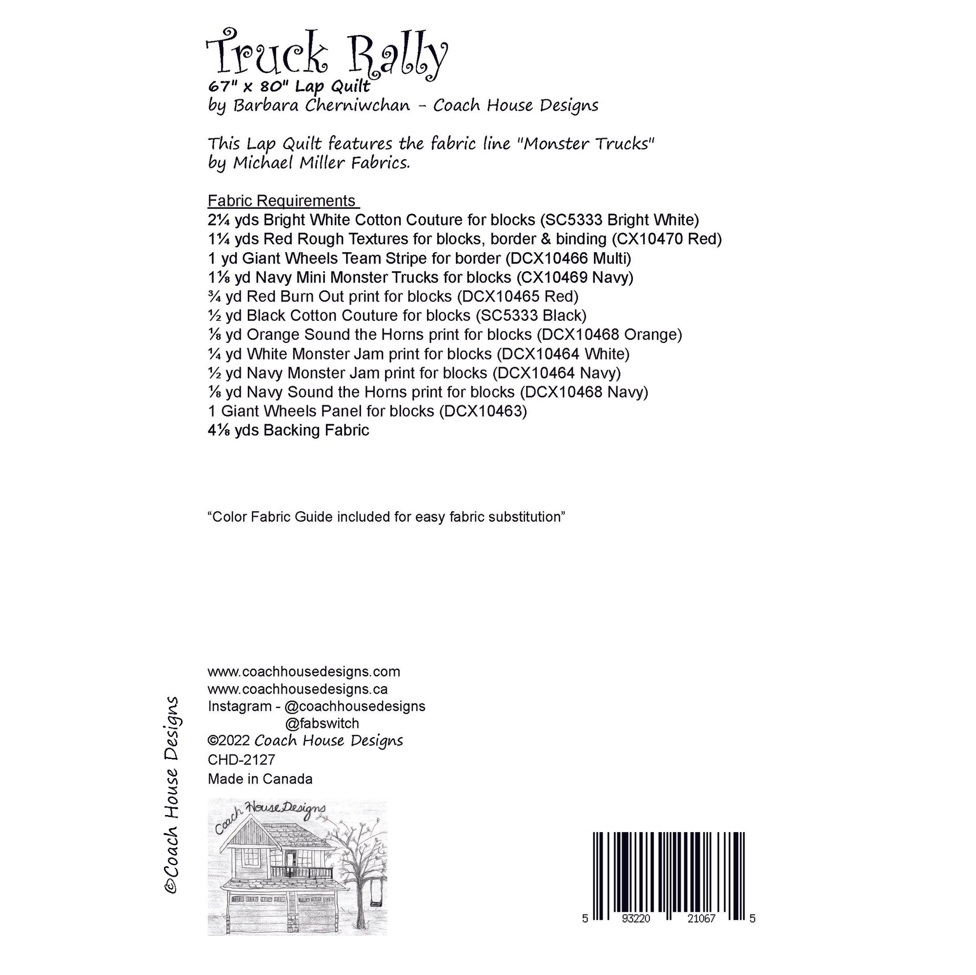 Monster Trucks Fabric will be available in stores February 2022 and the pattern is available now.